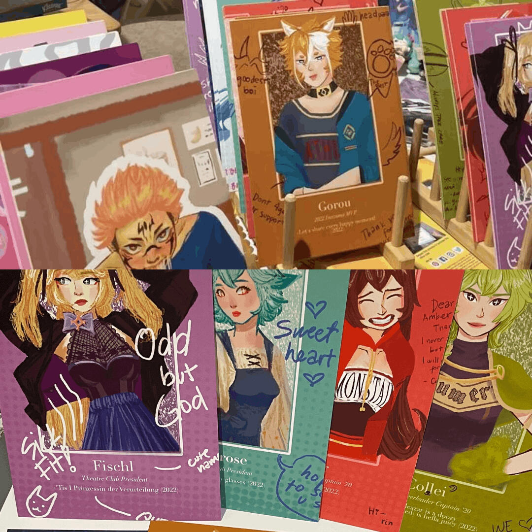 Fandoms: Valorant, Hoyoverse, Pokemon, Animal Crossing, The legend of Zelda, Fortnite, Terraria, Hollow Knight, Silk Song, Life is Strange, Project Sekai, Love and Deepspace, Stardew Valley, League of Legends, and more.