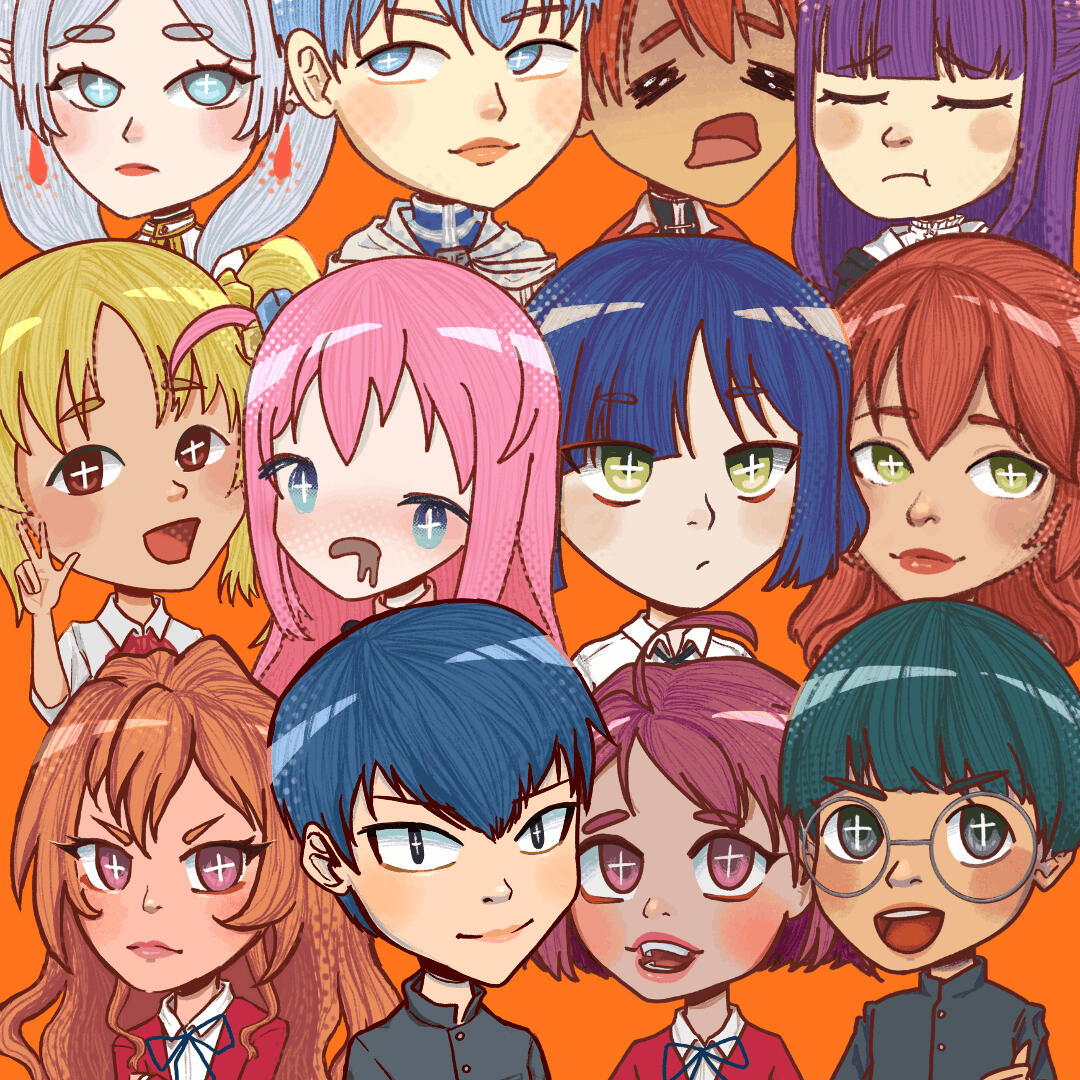 ANIME: Apothecary diaries, nana, toradora, miss koboyashi's maid dragon, bocchi the rock, frieren, sailor moon, cardcaptor sakura, and more.